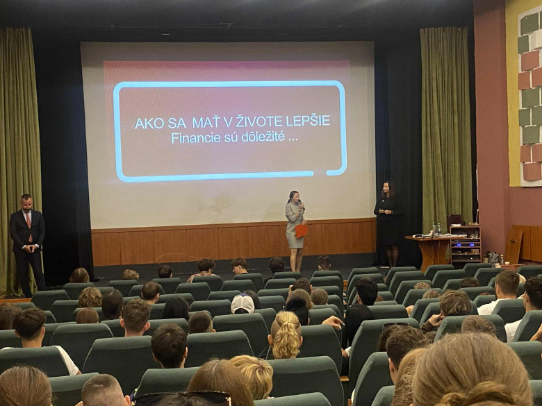 Bratislava 8. októbra (Skolske.sk) - „Každý z nás túži mať v živote dostatok, žiť spokojne a bez zbytočných obáv. Aby sme to dosiahli, potrebujeme rozumieť peniazom, vedieť s nimi správne hospodáriť a učiť sa robiť múdre rozhodnutia. Finančná gramotnosť je preto kľúčom k lepšiemu a slobodnejšiemu životu.“ Touto myšlienkou z úvodu knihy o finančnej gramotnosti sa niesla odborná prednáška pre študentov – všetky ročníky našej školy, ktorá sa uskutočnila v priestoroch Kina Sloboda v Skalici.