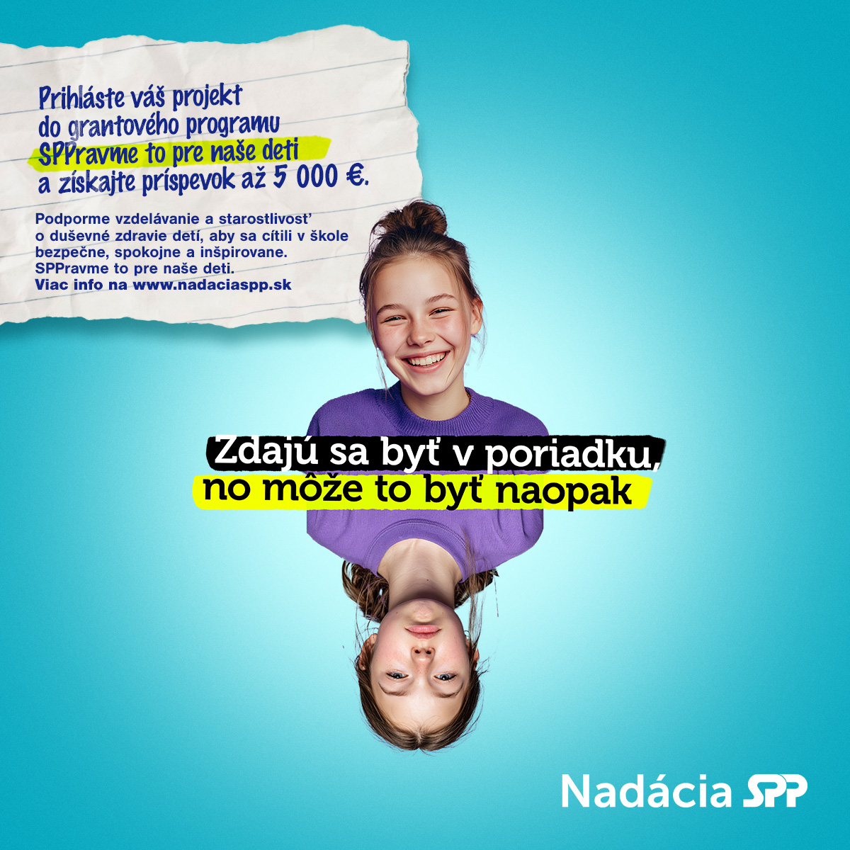 Učitelia pred nimi stoja denne. Vnímajú ich boj, úzkosť či stres a cítia, že potrebujú pomoc. Veľakrát však nevedia, ako na to, chýbajú im nástroje, čas či podpora. Práve preto Nadácia SPP otvára grantový program SPPravmeTo pre naše deti. Jeho úlohou je podporiť školy a pomôcť pedagógom pracovať na duševnom zdraví detí.