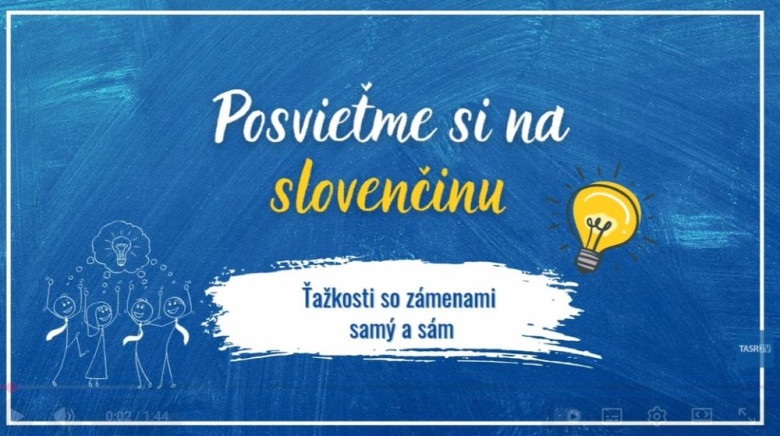 Bratislava 3. novembra (TASR) - Tlačová agentúra Slovenskej republiky (TASR) v spolupráci s Jazykovedným ústavom Ľudovíta Štúra Slovenskej akadémie vied (JÚĽŠ SAV) pripravila televízny seriál o spisovnej slovenčine. V jeho ďalšej časti moderátorka a vedecká pracovníčka SAV Romana Krolčíková vysvetlí, prečo majú ľudia ťažkosti so zámenami samý a sám.