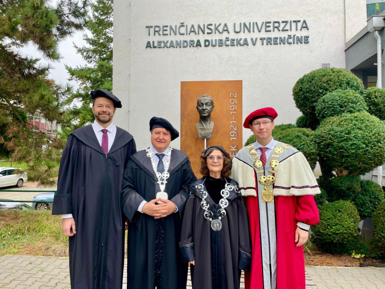 „Udelením čestných titulov doctor honoris causa vyjadrujeme hlboké uznanie dlhoročnej vedeckej a pedagogickej spolupráci oboch laureátov s našou univerzitou. Ich osobný prínos významne prispel k medzinárodnému renomé Centra FunGlass a k rozvoju materiálového výskumu na Slovensku,“ uviedol rektor Trenčianskej univerzity Jozef Habánik.
