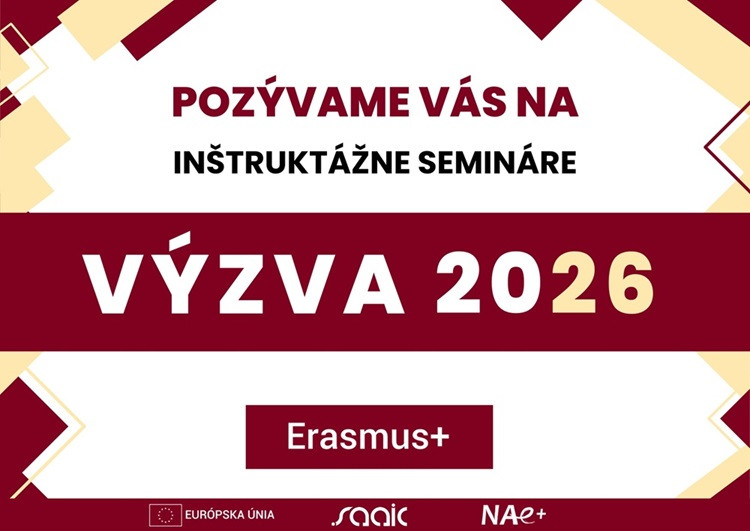 Národná agentúra programu Erasmus+ pre vzdelávanie a odbornú prípravu vás pozýva na inštruktážne semináre k Výzve 2026, kde sa dozviete, ako získať grant a pripraviť kvalitné projekty.