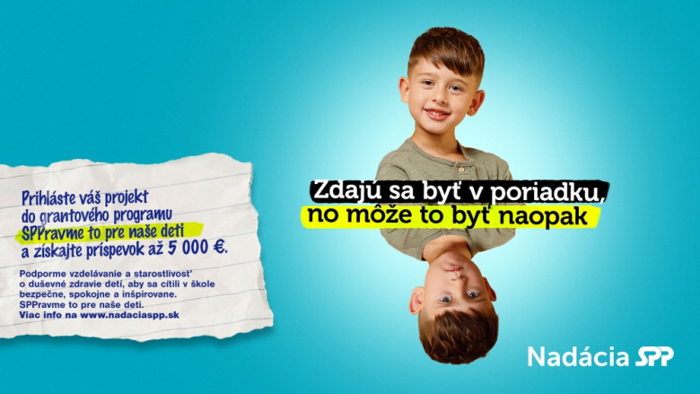 Učitelia pred nimi stoja denne. Vnímajú ich boj, úzkosť či stres a cítia, že potrebujú pomoc. Veľakrát však nevedia, ako na to, chýbajú im nástroje, čas či podpora. Práve preto Nadácia SPP otvára grantový program SPPravmeTo pre naše deti. Jeho úlohou je podporiť školy a pomôcť pedagógom pracovať na duševnom zdraví detí.