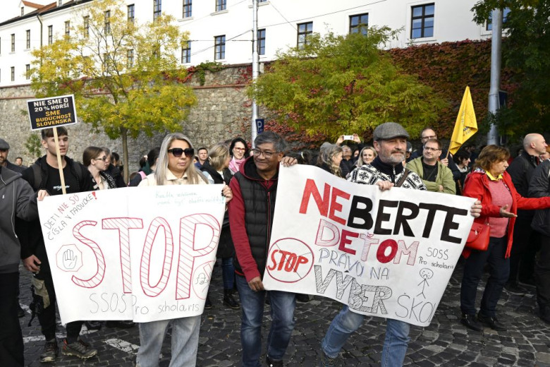Bratislava 16. októbra (TASR) - Školské organizácie a asociácie vo štvrtok popoludní protestujú pred budovou Národnej rady (NR) SR v Bratislave proti predloženým školským zákonom. Žiadajú ich stiahnutie. Zástupcovia občianskej iniciatívy „Takto nie“ zároveň na znak nespokojnosti odovzdali do podateľne parlamentu petíciu. Ministerstvo školstva vníma protest aj petíciu ako normálnu súčasť demokratickej diskusie. Organizátori týchto akcií však podľa neho opakovane a hrubo zavádzajú verejnosť o obsahu navrhovaných zmien.