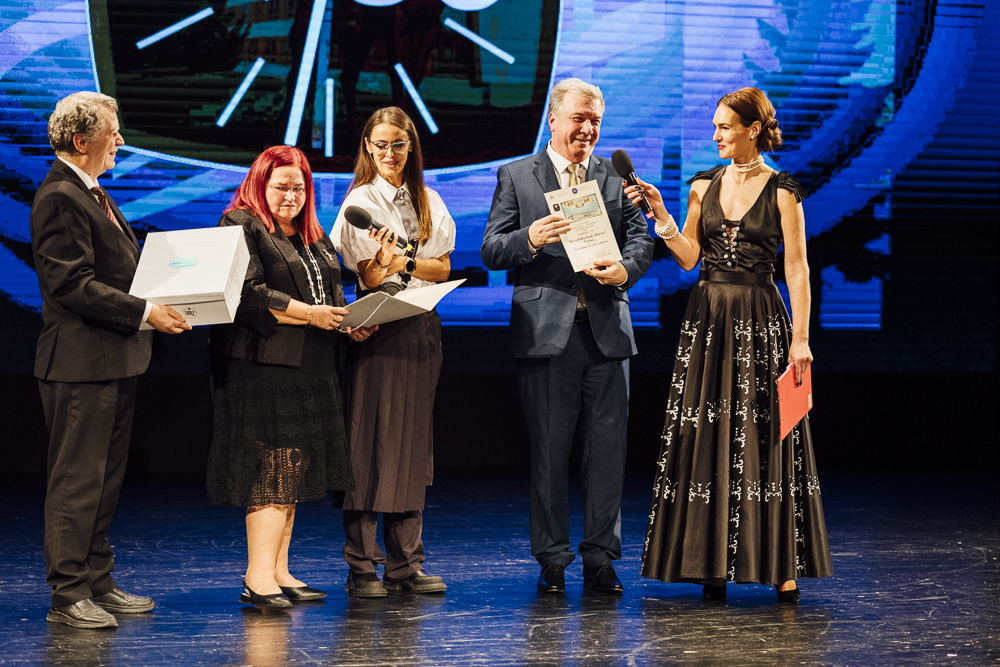 Slávnostný večer moderovali úspešné absolventky školy Lenka Šóošová, dlhoročná moderátorka TV Markíza a herečka a moderátorka Mgr. art. Lenka Debnárová, pedagogička školy.
