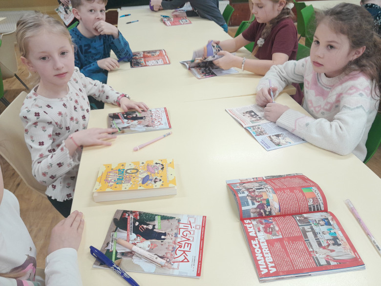 Základnou podmienkou projektu pre druháčikov bolo doniesť si pero a školský časopis Tilgnerka, decembrové číslo, ktoré u nás v škole okrem redaktorov predáva aj naša pani vrátnička. Deti, ktoré časopis nemali, dostali časopis ,,na požičanie“ do dvojice alebo trojice, lebo až toľko časopisov sme nemali –vypredal sa. Potom im starší žiaci zo Sexty A rozdali úlohy – mali v časopise vyhľadať 5 odpovedí na 5 otázok. Otázky boli primerané veku a schopnostiam čítať - obsahovali pokyny, na ktorej strane hľadať, ale ukázalo sa, že boj s písmenkami, teda čítaním, je pre niekoho ťažký, niekto ho zdoláva statočne a niekto aj vyhráva...
