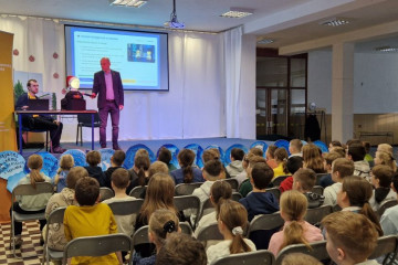Súčasťou jeho návštevy bola aj robotická hlava Furhat, ktorá vzbudila veľký záujem medzižiakmi.